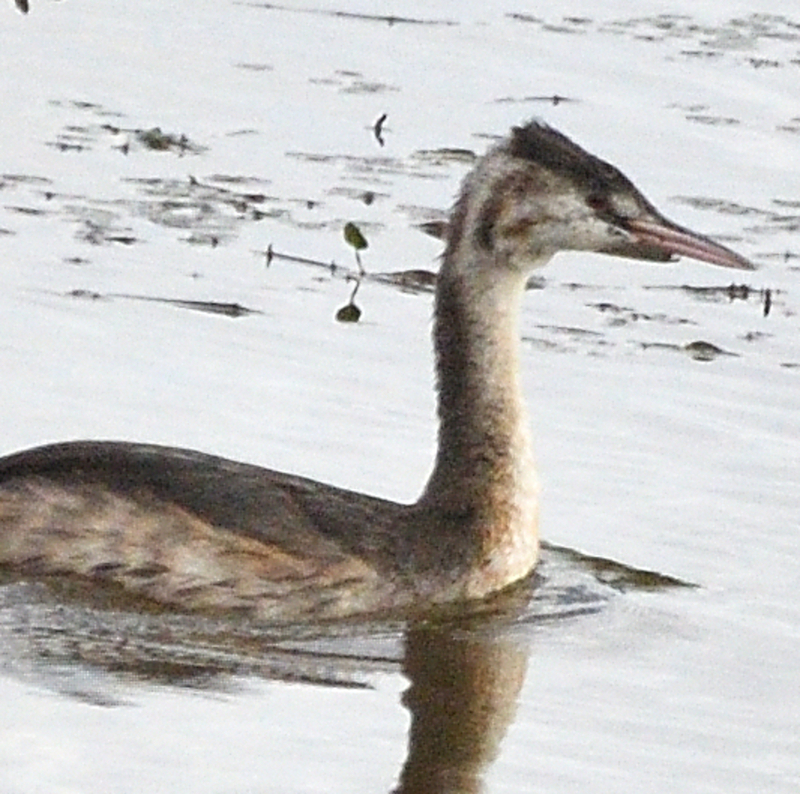 中の橋の西側のいつもの水域でカンムリの幼鳥が見えます